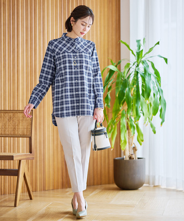 ノンアイロン チェック ブラウス【シワになりにくい】