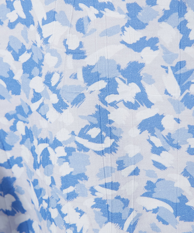 オリジナルのプリント柄がお洒落なハイネックのプルオーバーブラウス。素材にはシワ加工が施され、一枚で着ていただいてもこなれ感が出るアイテムです。