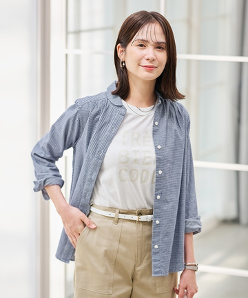 ショールカラー ギンガムチェック ブラウス 7,700円(税込) ネイビー 詳しく見る