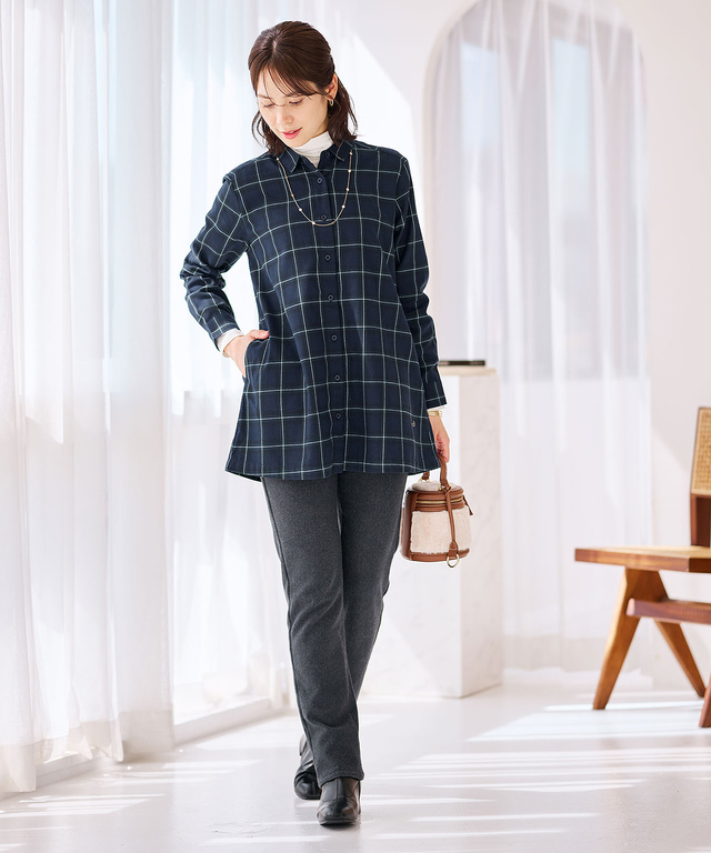 レギュラーカラー チェック柄 チュニック 9,900円(税込) ネイビー 詳しく見る