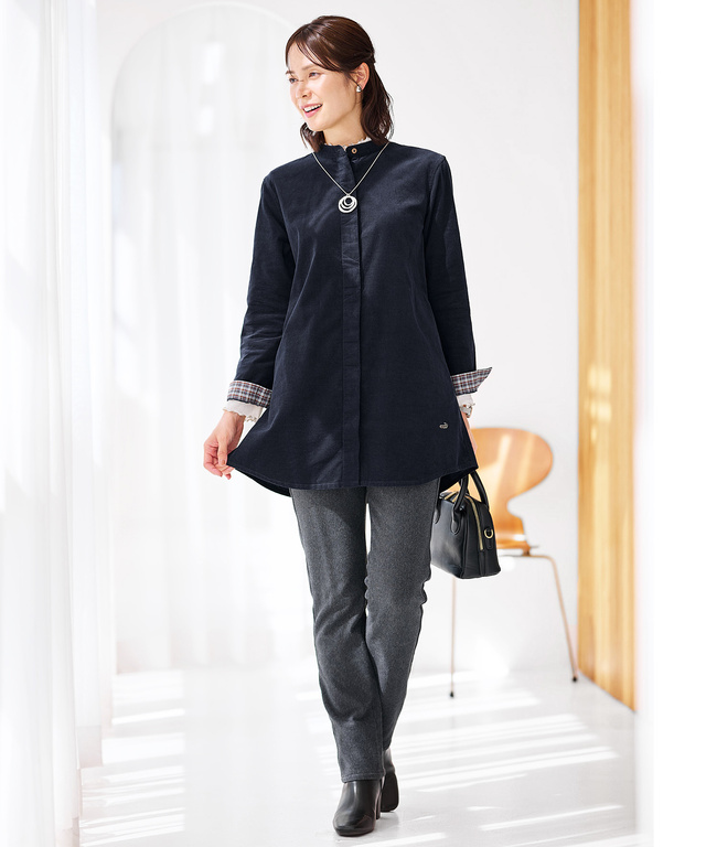 コーデュロイ バンドカラー チュニック【オンラインショップ限定】 11,000円(税込) ネイビー 詳しく見る