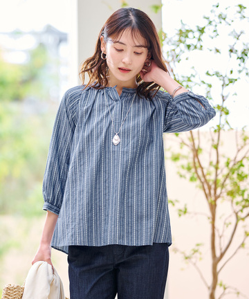 ジャカード スキッパー 七分袖ブラウス 9,900円(税込) ネイビー 詳しく見る