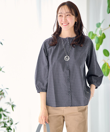 スノーコットン ミニチェック ブラウス【接触冷感】 8,800円(税込) ネイビー 詳しく見る